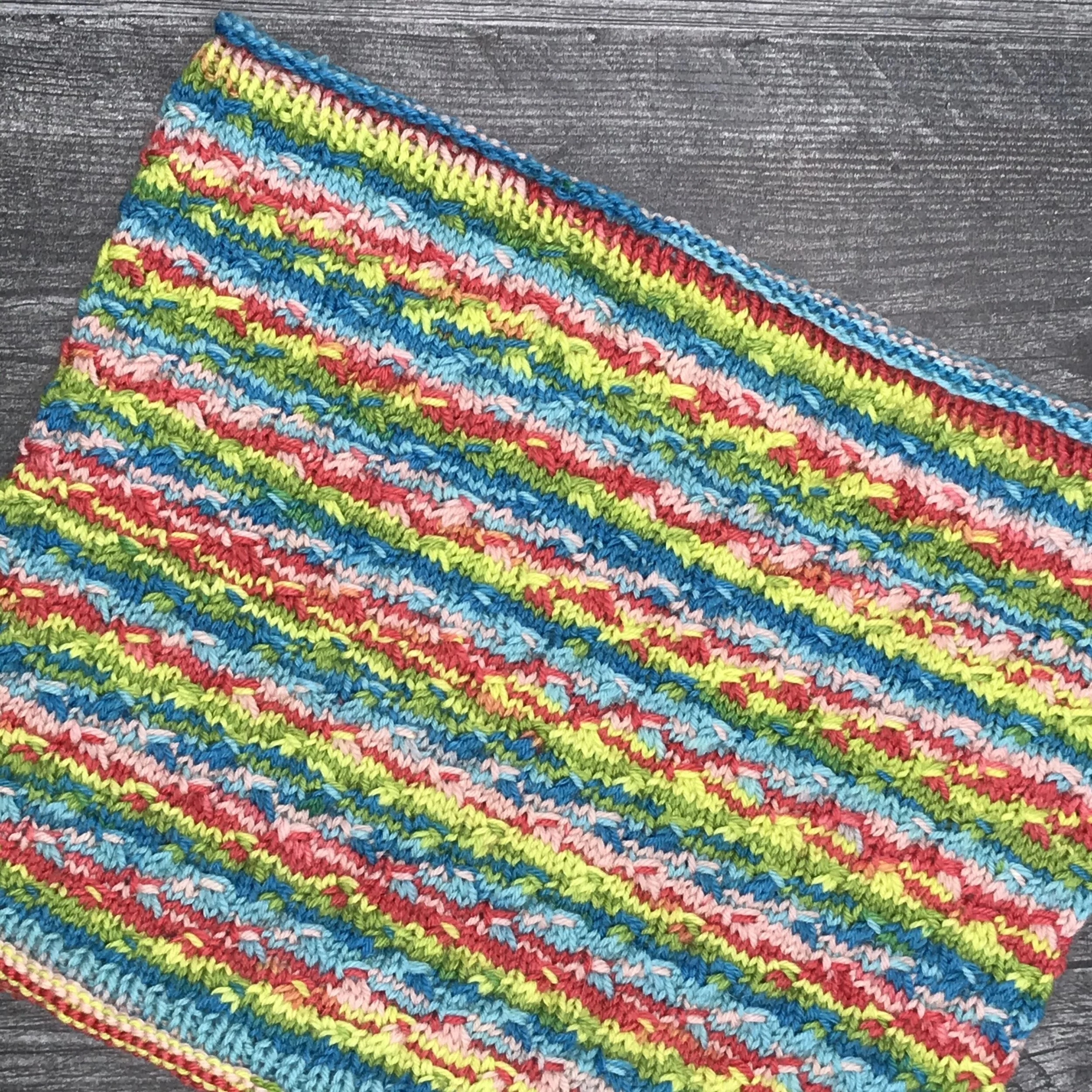 Rose City Rollers (Ravelry link) by Mara Catherine Bryner (free on Ravelry) on US size 1 (2.25 mm) needles in Knit Picks Chroma Twist Fingering (Ravelry link, discontinued, 437 yards/100 g) in colorway 27272 Lake Front. Leftovers from my Recamier: A Lounge Sock (Ravelry link), also by Mara Catherine Bryner.
